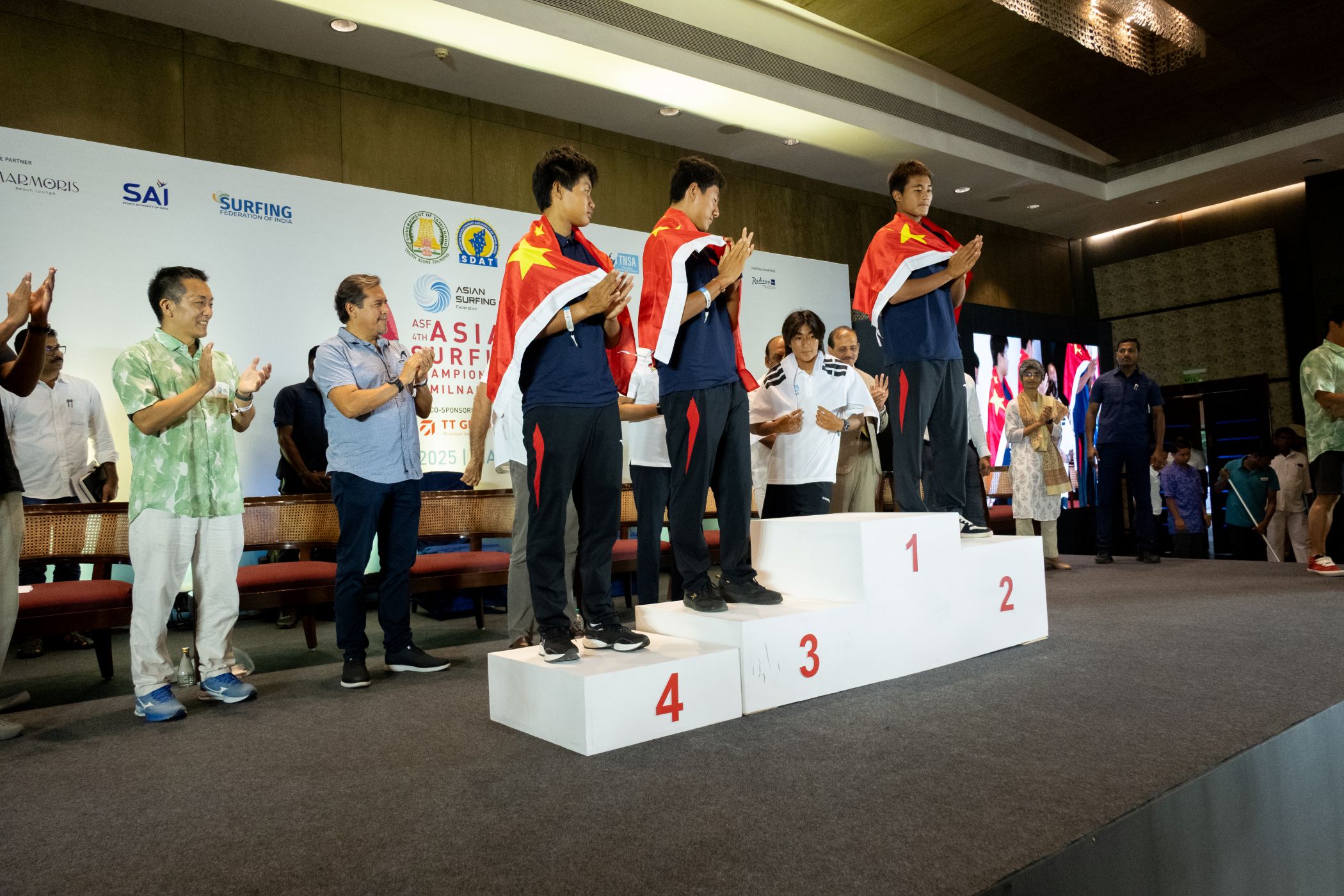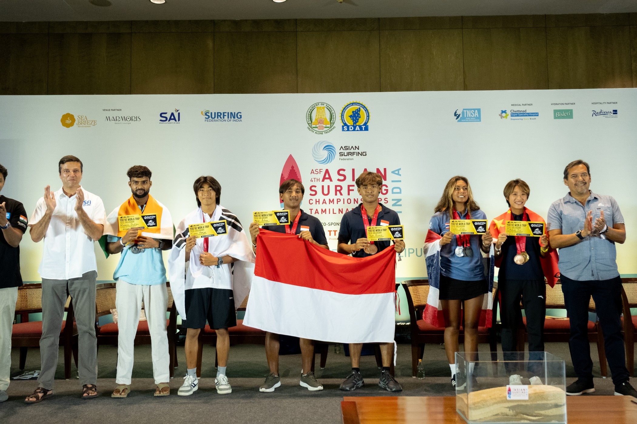 Posteriormente, su siguiente destino fue Mahabalipuram, Tamil Nadu, India, donde del 3 al 12 de agosto de 2025 se celebró el Campeonato Asiático de Surfing, evento clasificatorio a los Juegos Asiáticos de Aichi-Nagoya 2026, reuniéndose con el presidente de la ASF, Atsuchi Sakai.