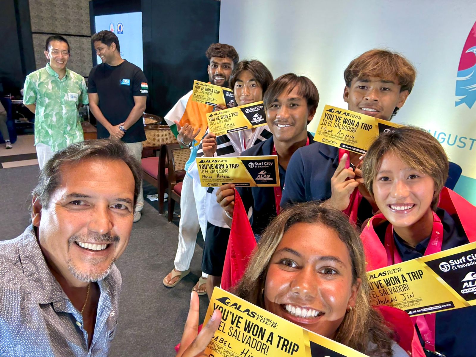 Esta gira también se enmarca en el ALAS Global Tour Finals, que se celebrará en noviembre próximo en El Salvador. Los ocho finalistas de los campeonatos continentales de Asia y Europa (cuatro mujeres y cuatro hombres) recibieron como premio una invitación a participar en el torneo City El Salvador, ALAS Global finals, ampliando el alcance e impacto de la visita del presidente Sierralta y su labor por el surfing continental.