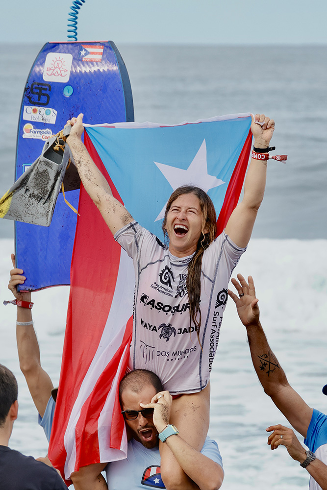 En bodyboard mujeres, la historia fue distinta. Las brasileras Maira Viana y Maylla Venturin llegaban como favoritas y estaban ratificándolo con 1 y 2 en la final, hasta que a la boricua Luz Grande se le apareció la virgen.